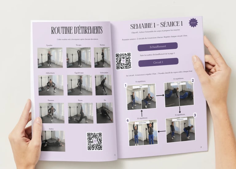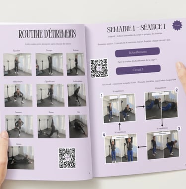 Mon e-book a été conçu pour vous offrir un cadre structuré et motivant afin de vous guider pas à pas dans votre reprise sportive.